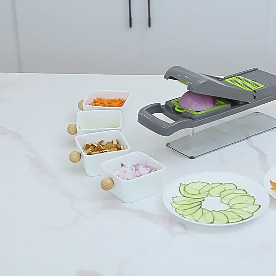 Equipped With Multiple Interchangeable Blades, A Safety Holder, And A Durable Container, It Ensures Mess-Free And Efficient Food Preparation. Whether You’re Cutting Onions, Potatoes, Carrots, Or Cucumbers, This Cutter Provides Uniform Results Every Time.